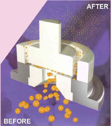 Khi kết thúc một chu kỳ, sản phẩm sẽ bị đẩy ra khỏi đầu đồng hóa với vận tốc lớn dẫn đến sự chênh lệch áp suất và thể tích một cách đột ngột. Kết quả là sản phẩm bị vỡ ra đến kích thước phân tử và được đồng nhất cùng dung dịch.
