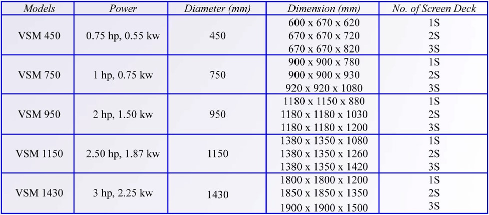 Máy có nhiều công suất để phục vụ cho các như cầu sản xuất đa dạng. Ngoài ra, khách hàng cũng có thể lựa chọn số lượng lớp lưới sàng cho phù hợp với mục đích sản xuất.